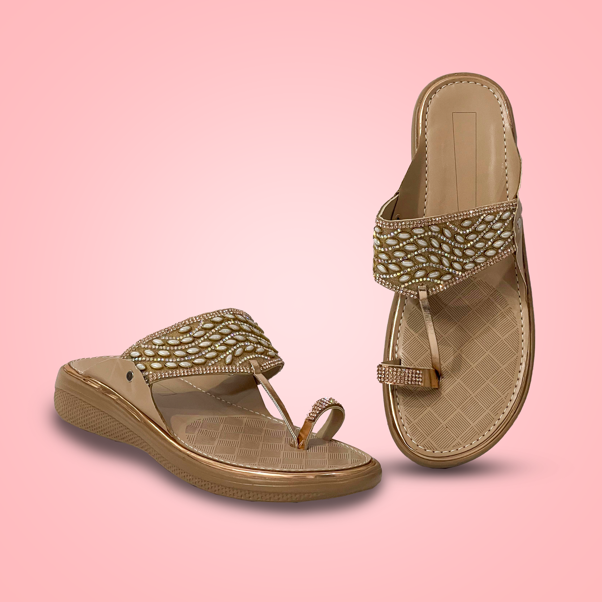 Golden Glam Ethnic Slip-On Sandals for Women – Elegant Festive Comfort