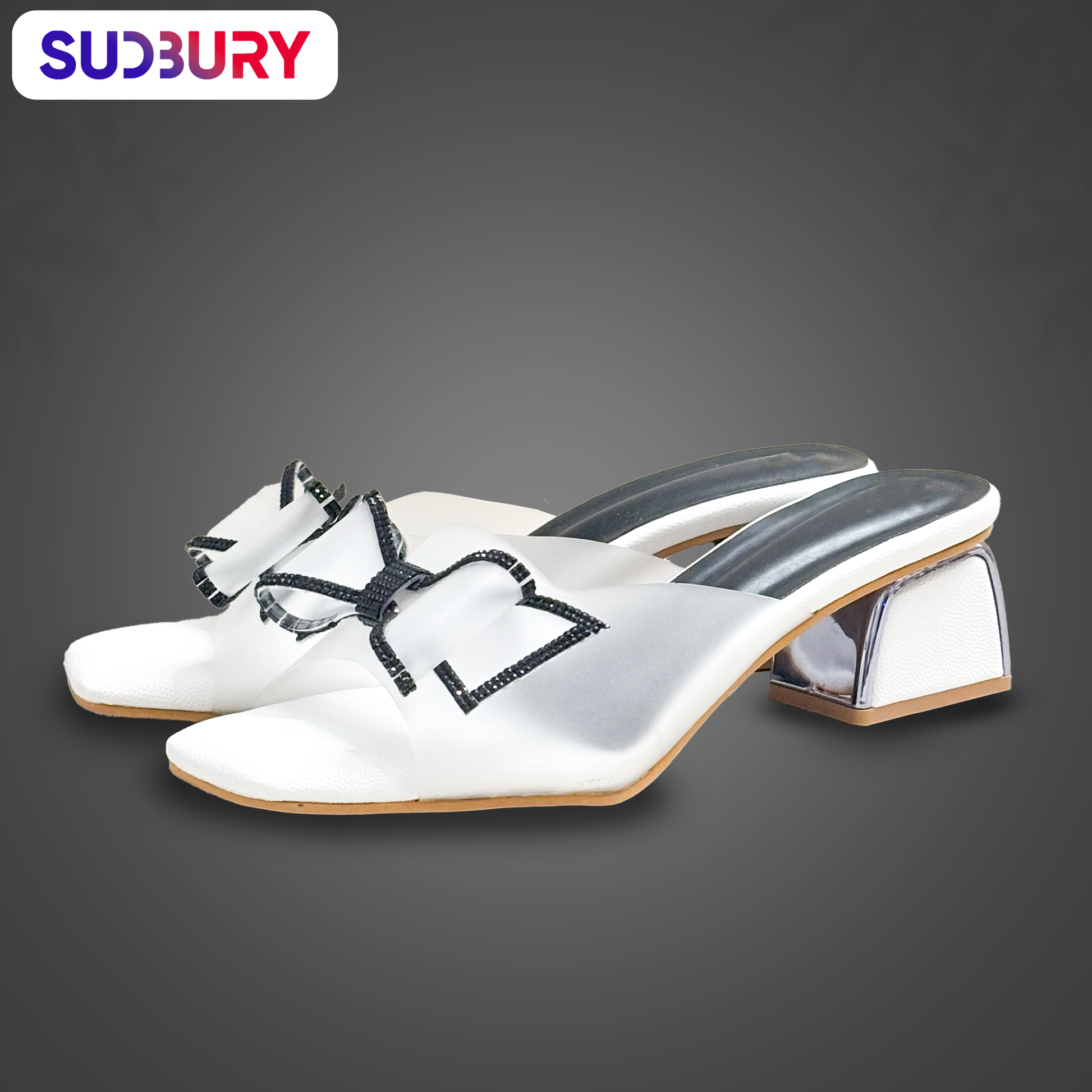 Turn heads with the Sudbury NoirBow Block Heel Sandals, featuring a striking black bow on a sleek white body. The open-toe design and mid-height heel offer the perfect blend of elegance and comfort, making them ideal for both day and night occasions.